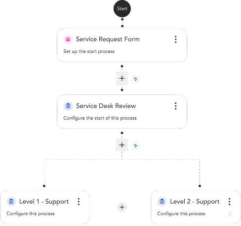 The AI-Copilot turns your prompts into a draft process with steps, forms, and rules. It’s the fastest way to go from idea to a working workflow.